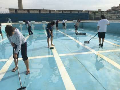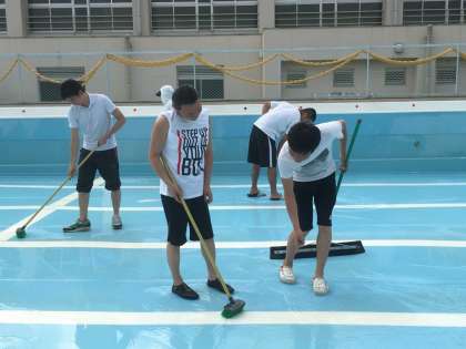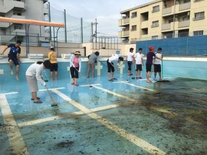 ピカピカのプールでみんなで気持ちよく泳ぎましょう。