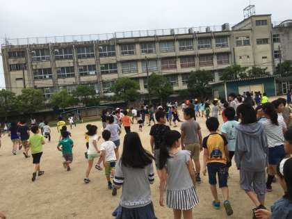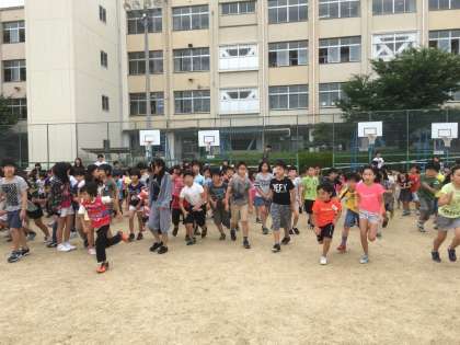 この運動場のどこかにある得点用紙を集めて、その合計が高かった班の勝ちです。