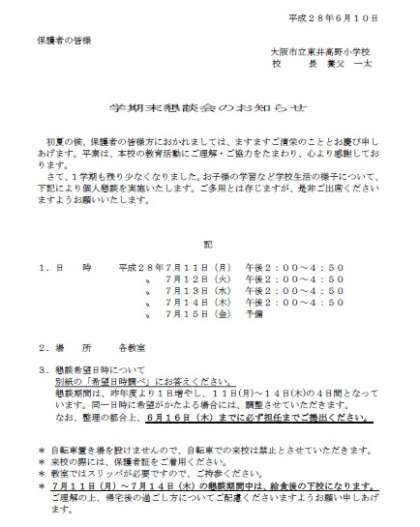 学期末懇談会のお知らせ