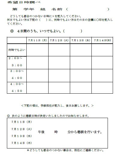 本日、「学期末懇談会のおしらせ」の手紙を配布しました。