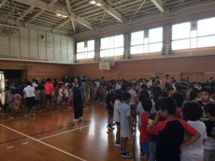 今日の児童集会は『バースデーチェーン』をしました。
