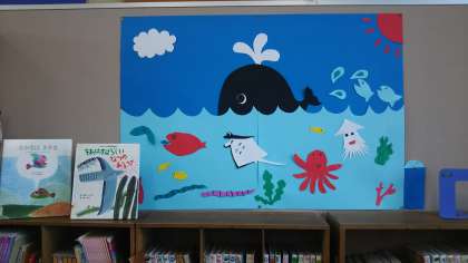 図書室がすっかり夏らしくなりました。図書ボランティアのお母さんたちが作ってくれました。とても可愛らしいですね。
