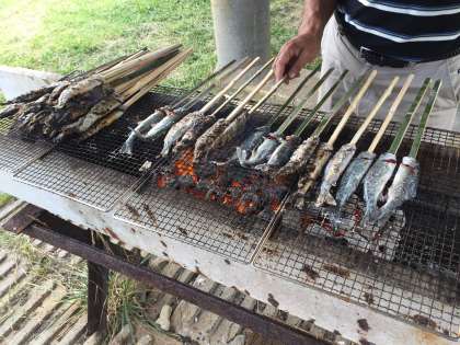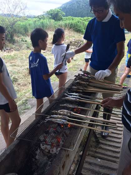 魚つかみを楽しんだ後は、魚を焼いて食べました。