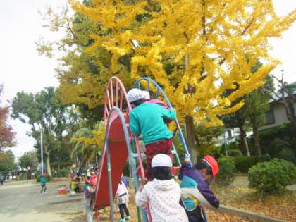 校外学習1年生 公開日 2013/11/28 更新日 2013/11/28 できごと 井高野公園は、今、秋の景色です。 11月28日(木)3時限目。1年生は、生活科の学習で秋を見つけに公園に行きました。落ち葉で遊んだり、色づいた木々の下にあるブランコや滑り台に乗りながら、深まりゆく秋を楽しみました。 「秋って、気持ちがいいね」 いいね(0)