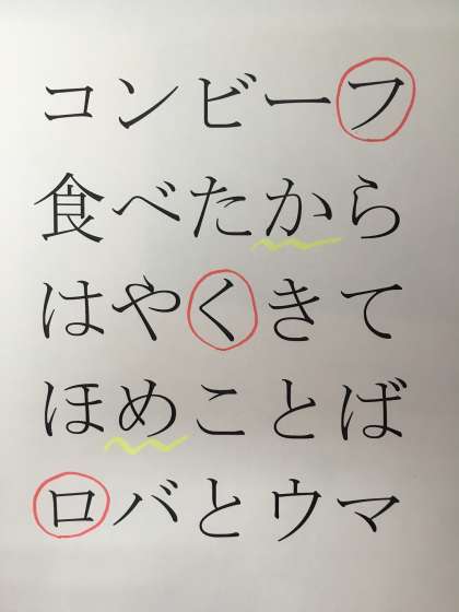 この手紙の中のふ・く・ろの文字の中にある文字を見ると、