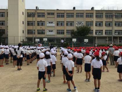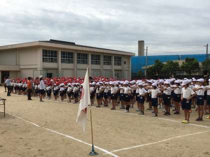 運動会当日の並び方や入場行進の仕方などの練習しました。