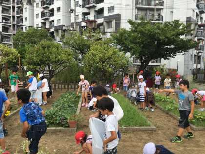 みんなで石ひろいをしたり、雑草抜きをしたりしました。
