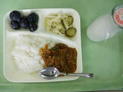 ドライカレー・牛乳・グリーンサラダ・巨峰です。