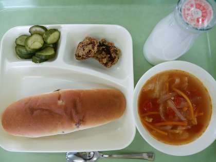 パン・牛乳・ミラノ風カツレツ・ミネストローネ・きゅうりのサラダ