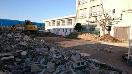 プール工事の進捗状況ですが、更衣室も撤去されました。ここに来年3月更衣室も設置されます。来年のプールからは、ここで児童も更衣するようになります。
