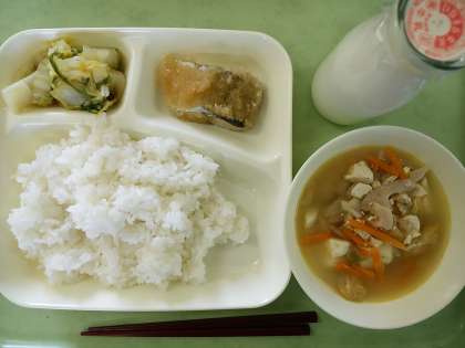米飯・牛乳・さごしのおろし醤油かけ・けんちん汁・白菜のおひたしです。