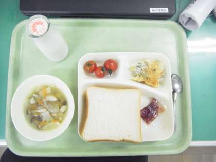 1月8日(水)の給食は、マカロニグラタン、だいこんのスープ、プチトマト、パン、牛乳でした。