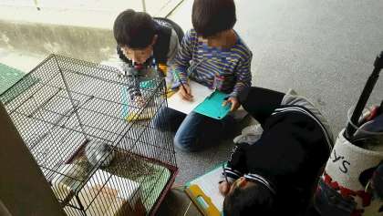 1年生は、とても熱心に観察し、「鼻がぴくぴくしてる。」「目がとってもかわいい。」と友だちと話しながら、スケッチしていましたよ。