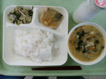 米飯・牛乳・鯖のみぞれかけ・みそ汁・おおさかしろなの煮びたしです。