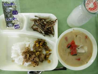 今日の給食 公開日 2017/01/12 更新日 2017/01/12 給食 12日の献立は、 きんぴらちらし・雑煮・ごまめです。 エネルギー621kcal たんぱく質26.1g 脂質12.0g いいね(0)
