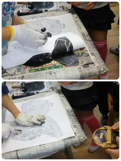 作った作品が、真っ黒になるので、少し心配そうな表情をしている児童もいました。