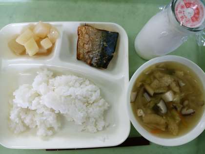 米飯・牛乳・鯖の塩焼き・五目汁・大根のみそ煮