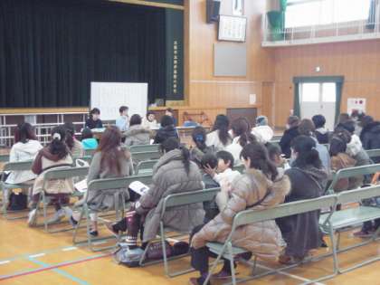 保護者の皆さんは、とても熱心に話を聞いていました。4月に入学してくる新1年生が元気に登校する姿が楽しみです