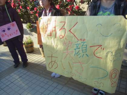今日は、「見守りデー」で、地域の人たちも一緒に校門前に立っていただきました。