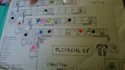 たくさんのシールを貼れた学校地図を友だちに見せながら、とてもうれしそうな1年生でした。