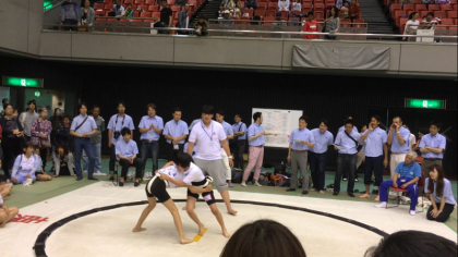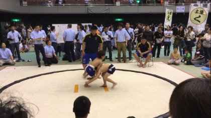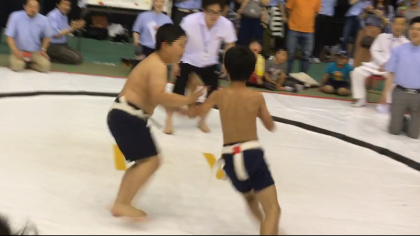 たとえ体格の差があっても、みんな一生懸命に相撲をとっていました。