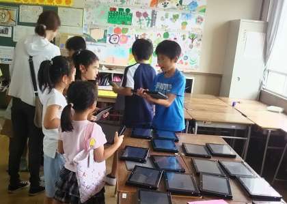 タブレットを使ったお店もあり、子どもたちは使いこなしていました。
