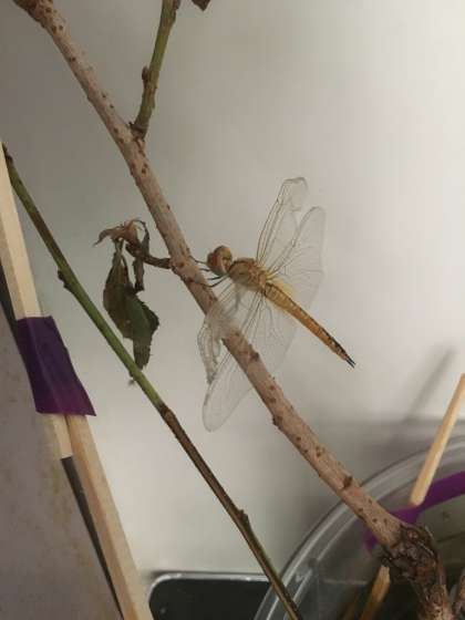 昨日、なかよし教室前にいたヤゴがついにトンボに成長しました。
