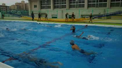 流れに乗ると泳ぎが苦手な子も泳ぎやすかったり、流れに反ると水の抵抗感を感じられたりします。子どもたちは楽しみながら一生懸命に泳いでいました。