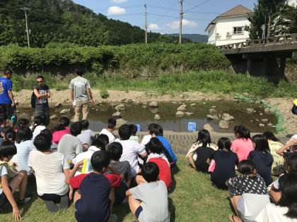 子どもたちの楽しみの一つ、魚つかみです。