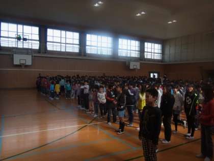 今日は、講堂で新しく入ってきた1年生を迎える会がありました。昨年度の計画委員会・クラス代表が司会となって、歌や○×ゲームをして楽しく過ごしました。早く学校に慣れて楽しい6年間を送ってほしいと思います。