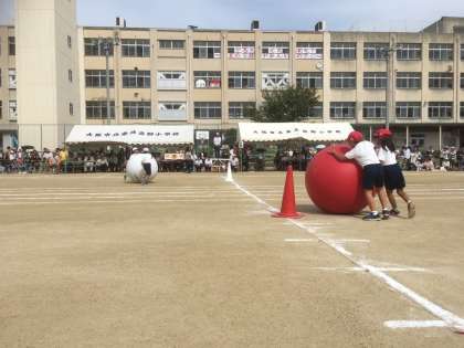 団競の「ジャングル つきぬけ パワフル 大玉ころがし」は、とても白熱しました。気持ちと気持ちのぶつかり合いで、勝利めざして最後まであきらめずに転がしていた姿が印象的でした。