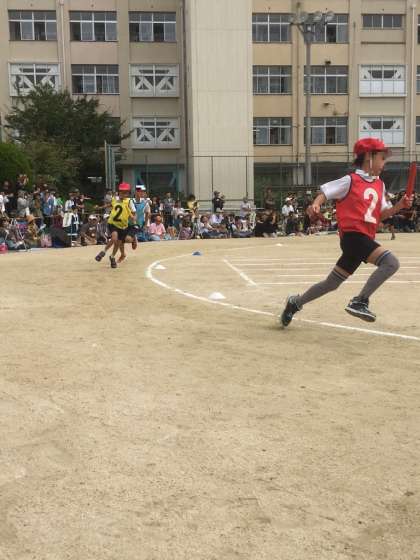 紅白リレー「一蓮托生」では、怪我をしている児童も参加しながら、バトンをつなぎ、一着を目指して、誰もが一生懸命に走っていました。友だちを懸命に応援する姿も印象に残っています。