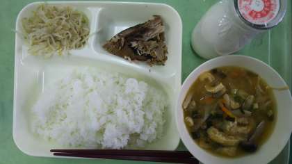 米飯・牛乳・なまりぶしの生姜煮・みそ汁・もやしの胡麻和えです。