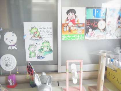 校長室と職員室前の廊下には、図工が得意な先生の作品が展示されています。
