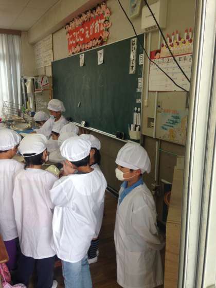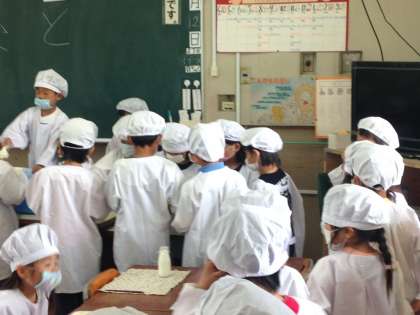 給食がはじまり、1か月となりました。1年生は初めてなので、最初は担任の先生に用意してもらっていたのですが、今では自分たちで立派に給食の準備をしています。
