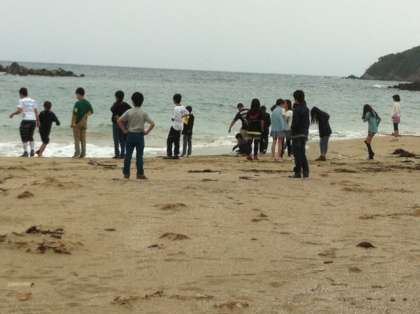 宿舎を出発する前に、宿舎前の砂浜を散歩しました。