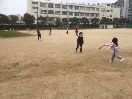 寒い中、子どもたちは走り回って元気に遊んでいました。