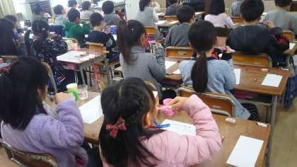歯ブラシの持ち方、みがき方、力の入れ方を教わり、ていねいに歯をみがいていきました。すると驚くことに、2回目の薬をつけてもらうと、ほとんどの児童が真っ白の歯のままでした。