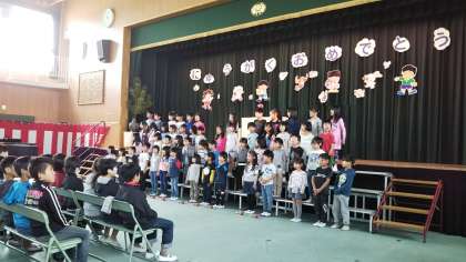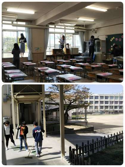 校内をピカピカに掃除してくれたり、新1年生の教室に可愛らしいイラストを描いてくれたりしてくれました。