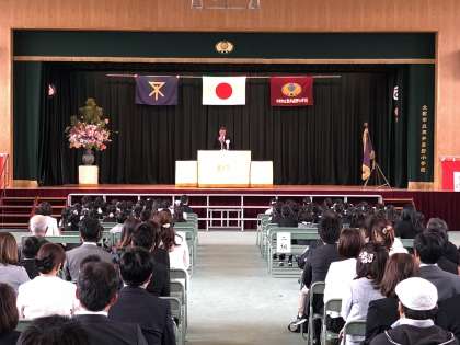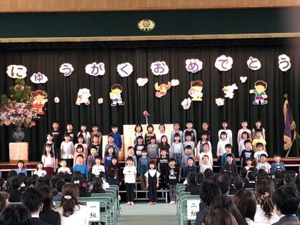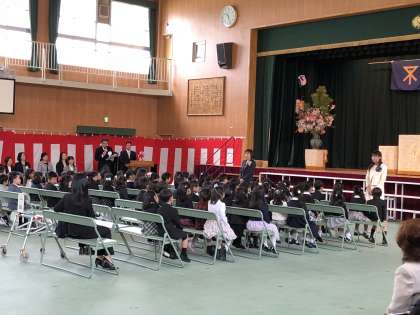 新2年生からは東井高野小学校の紹介やお祝いの言葉、素敵な歌のプレゼントもあって、とても和やかな式典となりました。