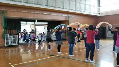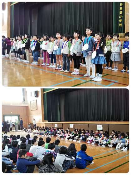 みんなで「ドキドキドン1年生」を歌ったり、東井高野小学校に関する○×クイズをしたりと楽しい会になりました。