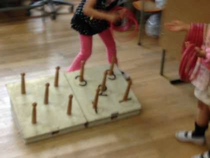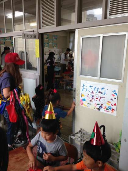 1年生の「かわいいわなげやさん」と「おさかなランド」です。