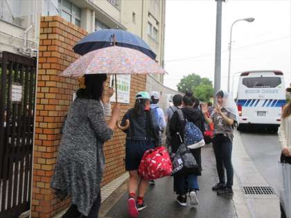 6年生は、『テルテル坊主軍団』に見送られ、