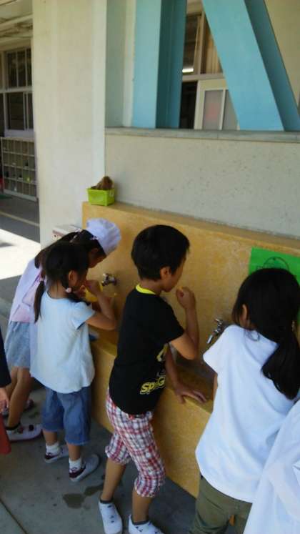 各学年給食の後は、歯みがきをしています。