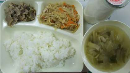 米飯・牛乳・豚肉の梅風味焼き・すまし汁・切り干し大根の炒め煮です。