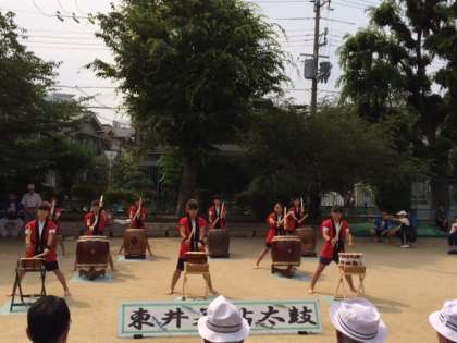 6月16日(日)は東井高野校区で地域まつりがありました。朝9時より、お神輿や山車が東井高野地域をねりあるきました。地域まつりの始まりに際して、6年生による東井若鮎太鼓が披露されました。迫力の演奏に観衆からは拍手喝采でした。