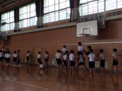 運動会練習 6年 公開日 2018/09/11 更新日 2018/09/11 6年生 9月11日(火) 2学期に入り、6年生は、早くから運動会の練習に取り組んでいます。 技の説明を聞き、確認しながら、みんなで力を合わせて1つの技を作っていきます。 何度も練習して、確実に技が決められるのをめざします。 そして、1つ、また1つと技を増やして、素晴らしい組体操を作ってくれることと思います。 完成が楽しみですね!! いいね(0)