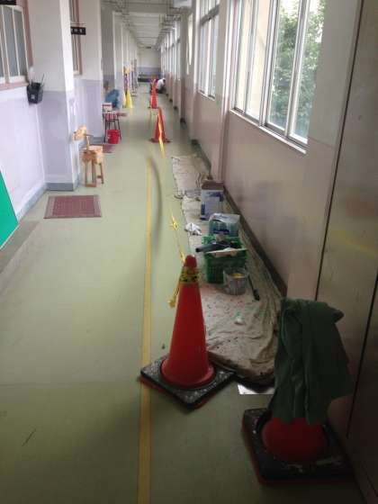 7月から約2週間、1・2階の壁面を塗装しています。きれいになるのが楽しみです。