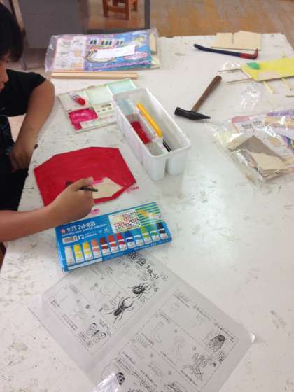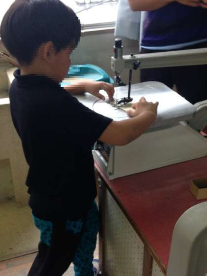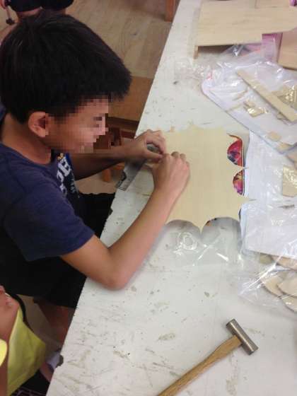 5年生の図工の時間です。「糸のこドライブ」という、ベニヤ板を切って色をぬりホワイトシートをベニヤ板にはってホワイトボードを作る教材です。どの子もみんなとても上手に作っていました。