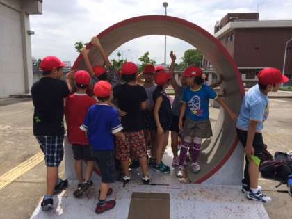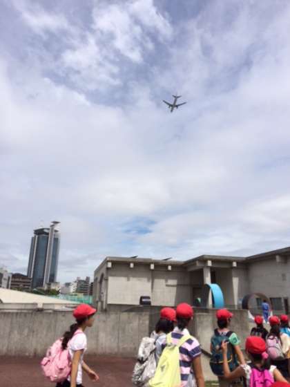 柴島浄水場の上空には、伊丹空港へ着陸する飛行機が何機も通過していきます。柴島浄水場の敷地面積は、甲子園球場の約13個分もあるそうです!阪急の淡路駅の近くから崇禅寺駅、柴島駅にまたがっていて、3つある大阪市の浄水場施設の中では規模や水処理能力が1番あるそうです。児童は、水道管の大きさに驚いたり、ろ過実験をして充実した時間を過ごしました。